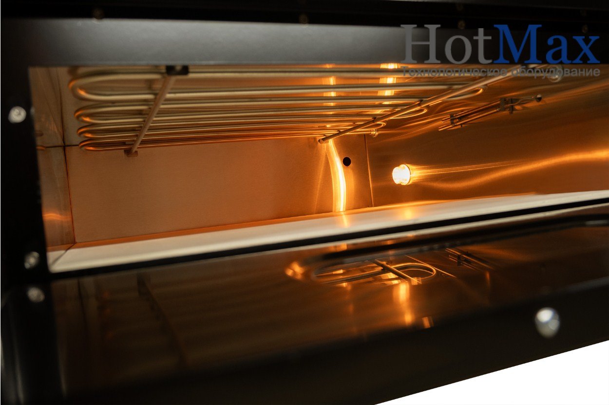 Жарочна камера оснащена підсвічуванням, кам'яним подом і двома рівнями нагріву (верх і низ) |