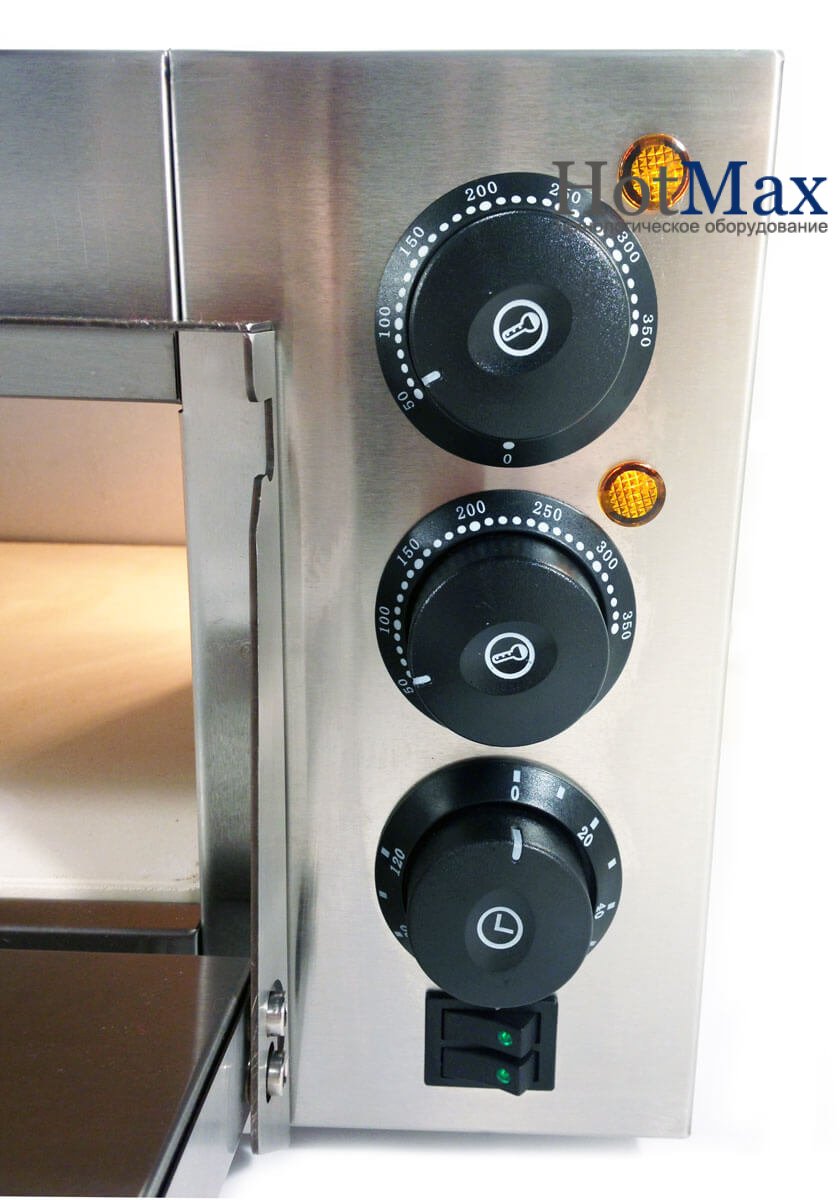 Модель має роздільне управління верхньої і нижньої зони нагріву камери. Завдяки потужним ТЕНам піч для піци легко розігрівається до температури близько 350 градусів Цельсія за 20-30 хвилин.