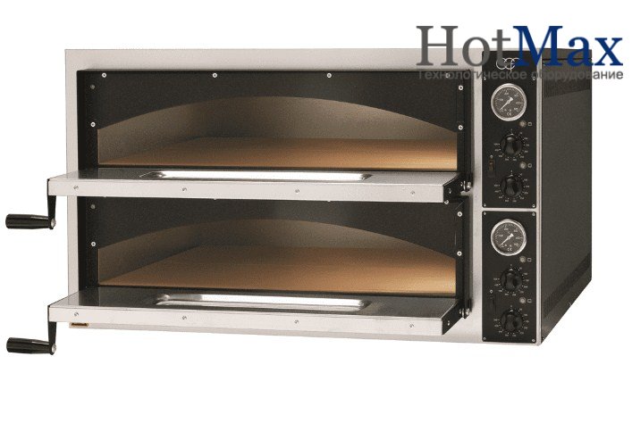 Двухкамерная печь для пиццы вмещает в себя 4+4 пиццы диаметром до 35 см. Габаритные размеры камеры - 700х700х140 мм.