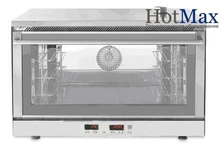Несмотря на это, благодаря электронному типу управления, эта печь очень удобна и проста с позиции ее эксплуатации. Расстояние между каждыми из трех уровней равно 80 мм, а на противнях, размерами 600х400 мм, изделия идеально прожариваются и не подгорают благодаря наличию функции пароувлажнения. Суть ее состоит в том, что на ТЭН подается вода, в результате чего образуется пар, который циркулирует вместе с горячим воздухом внутри пекарной камеры. Благодаря этой функции в таких печах получаются очень вкусные мучные изделия (сдоба, кондитерские изделия, хлеб, булки). Максимальный температурный режим равен 270 С, к тому же, контроль над процессом можно установить при помощи таймера, а визуально наблюдать за процессом стало возможным благодаря дверце, выполненной из термоустойчивого стекла.