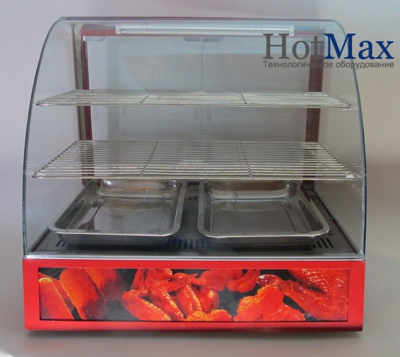 Мы купили нашу витринку около месяца назад в детское кафе. Используем ее для выкладки пиццы и пирожков. Температуру мы не выставляем и используем витрину исключительно для демонстрации, а при необходимости подогреваем продукт в микроволновой печи. Полочки не зафиксированы и если сильно дернуть, то полочка может и упасть. Витрина сама по себе достаточно маленькая, но места для выкладки нам хватает, т. к. товар постоянно раскупается и пополняется новым. Еще нам нравится, что витрина достаточно хорошо освещается и маленьким покупателям видна вся выпечка.