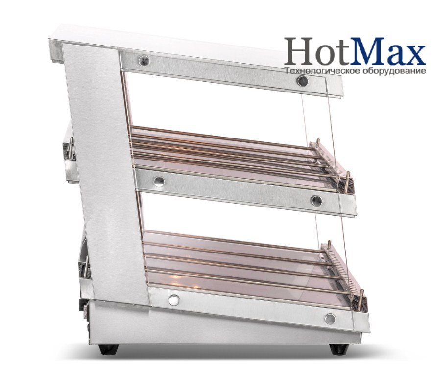Вітрина теплова GoodFood WS65 ELIT - застосовується для викладання випічки та підтримки її в теплому стані. Наприклад, для викладання вафель, кондитерських виробів, булочок, пиріжків, також можна використовувати, як вітрину для курей-гриль. Підсвічування товару зсередини. Усі внутрішні та зовнішні елементи з нержавіючої сталі AISI 304. Загартоване скло збоку. Незалежні регулятори тепла та освітлення для кожної полиці. Полиці с системою регулювання Suvider для легкого завантаження різних продуктів.