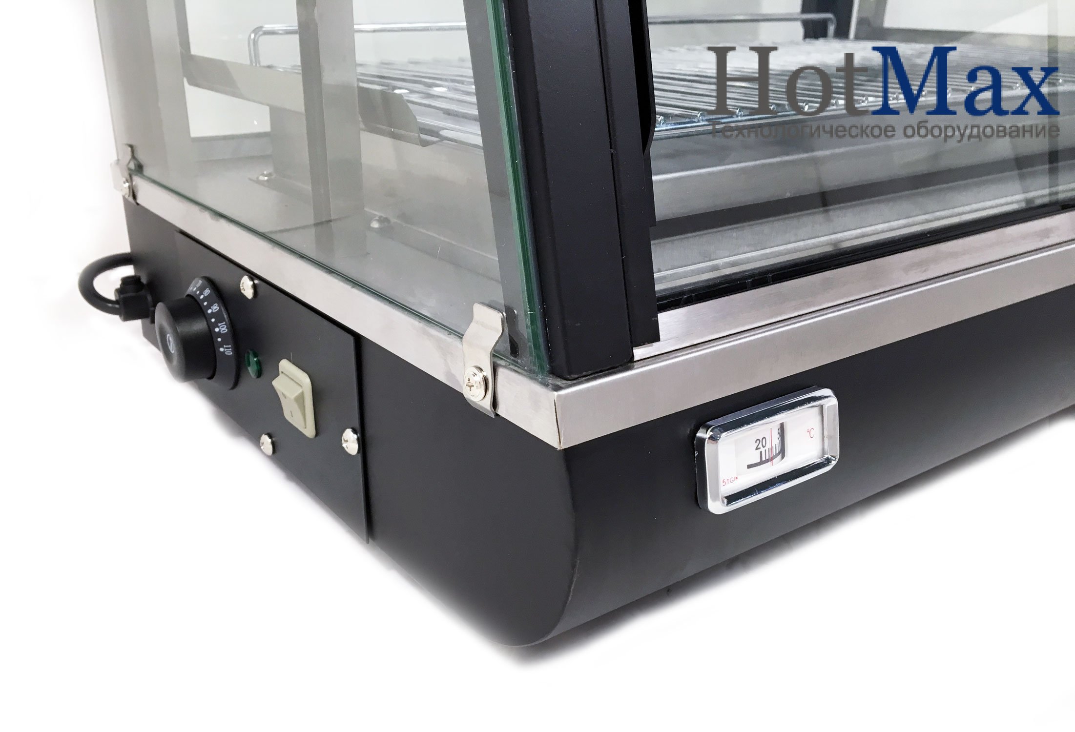 - Теплова вітрина з трьома хромованими полицями 270х820, 290х820, 300х820 мм, що регулюються по висоті.